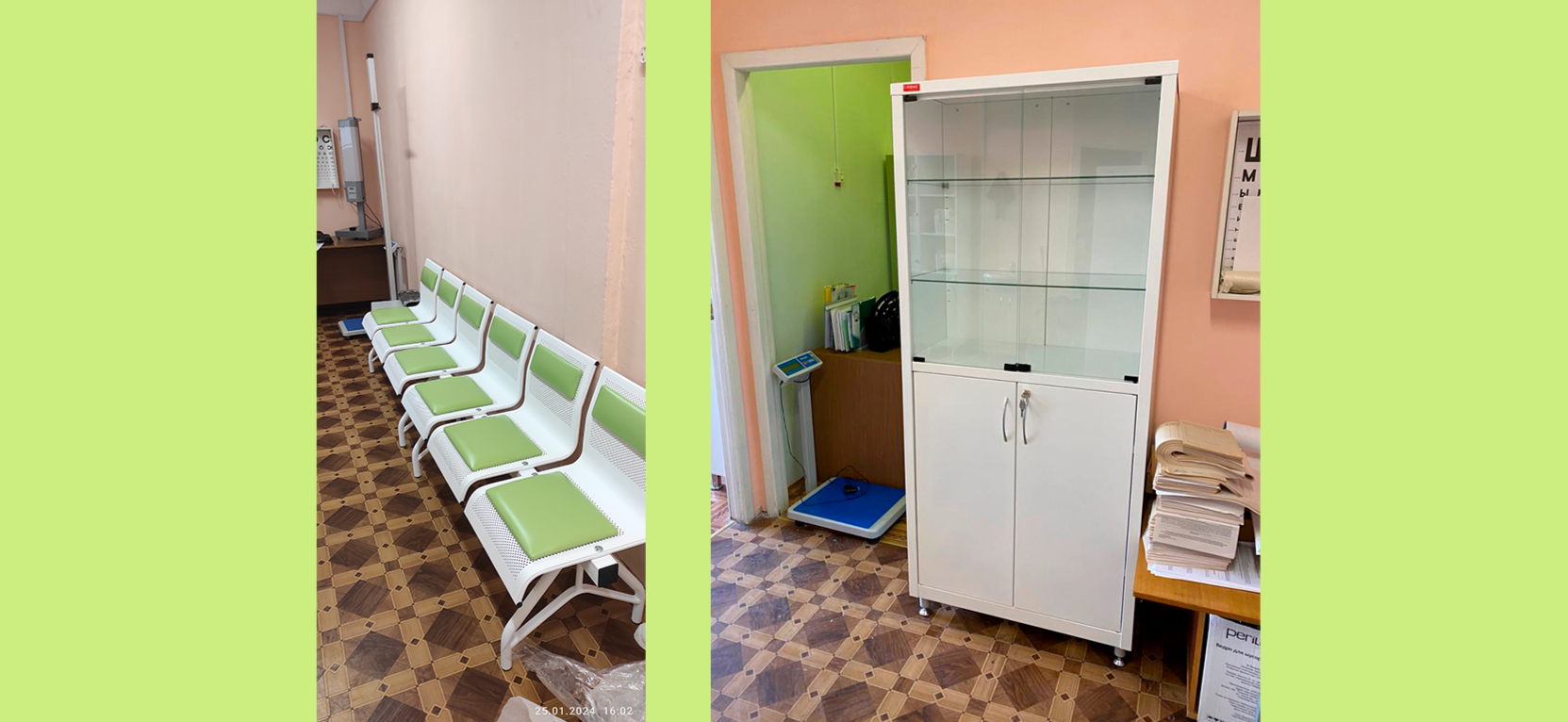 в медкабинет установили новые кресла и медицинские шкафы.